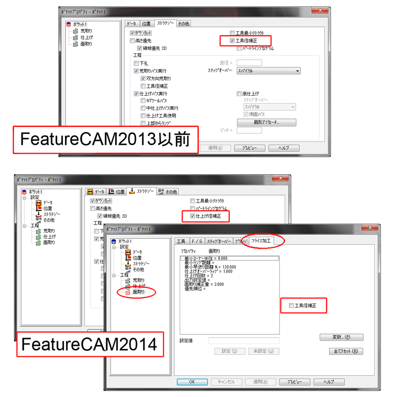FeatureCAM2014 R2(V20.6.0.26)から面取り径補正のON/OFF機能が追加されました。